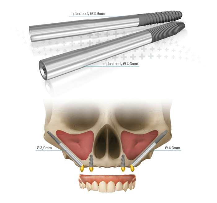 Conventional (endosseous) dental implants are not applicable in all cases - particularly in severe maxillary bone loss in the upper jaw. This often affects precisely those patients who have already been declined due to the complexity of the procedure.
